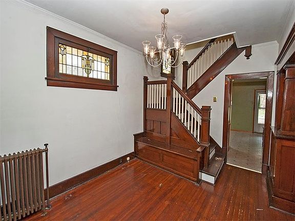 Enormous brick Victorian home with 3 bedrooms, 1.5 baths, 1 car garage, level yard, and tons of living/entertainment space. Walking through the front door you'll love the wide open foyer with original woodwork on display, gleaming original hardwoods sprawling throughout the home, and tall ceilings creating a wide open feeling. The eat-in kitchen is open to the dining room and large rear deck. You'll love the expansive bedrooms and the massive 30x15 game room or 4th bedroom on the 3rd level. The large double lot gives you plenty of outdoor space. All pictures are old.. All shrubbery and trees and fences in the yard were removed. You have a clear front and back yard. White shed can be made into a playhouse or little hide away. Welcome home.