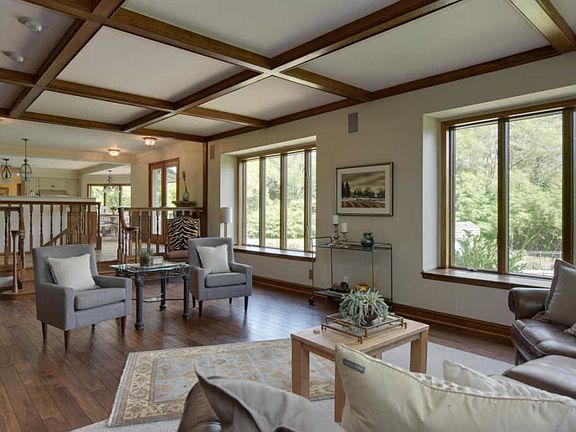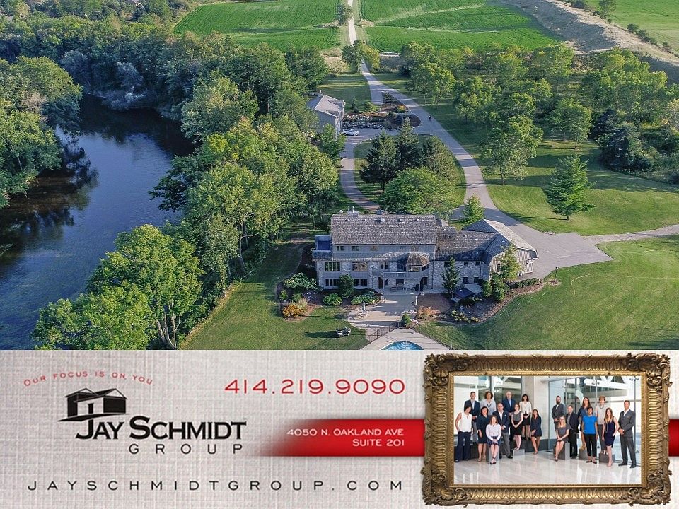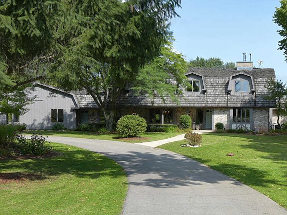 Private estate on over 35+/-acres and 900 ft of frontage. Main house with sweeping, wooded views of the river and overlooking inground pool and poolhouse. Open concept living, Chef's kitchen, natural fireplace, living room and den. 1st floor laundry, huge rec room and bar. Master suite overlooking the river with large walk in closet and bath w/steam shower and soaking tub. Separate coach house with 3 car garage built in 2013. Tennis court, pole barn, Circle driveway and more. Enjoy fishing, kayaking or just a cup of coffee on your deck overlooking the river. 25 min to downtown MKE. Exquisite!
