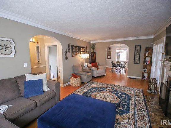 If you're looking for charm, you've got to see this classic brick beauty in historic Forest Park subdivision. Offering over 2100 sq. ft. of living space with original hardwood floors, crown molding, trimwork, built-ins and so much character! Great space for entertaining in the large living room with wood burning fireplace, connected to a formal dining room. The lovely kitchen with brick floors and granite countertops includes a vaulted breakfast nook with wood beams and a breakfast bar that opens up to the family room, which features a second fireplace and seated bay window. Make your way upstairs, where you'll find all 3 spacious bedrooms and 2 full bathrooms. You're sure to be surprised in the primary bedroom when you open the door to the enormous ensuite bath with walk-in shower, twin vanity sinks, and granite countertops, in addition to the closets and laundry space. The second bedroom includes an amazing loft area with vaulted ceiling, perfect for use as office space, hobby or play area, or even additional storage. All of this with a fully fenced private backyard complete with playset, 2 car detached garage, sunroom, and basement with storage rooms. This a show-stopper you won't want to miss!