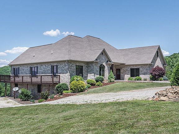 Savor natural beauty and seclusion with miles-long views from a luxurious Virginia mountain estate. Set among 182 acres +/-, the home features 5 bedrooms including 2 master suites, 6 bathrooms, 2 full gourmet kitchens and large deck with panoramic view of the Blue Ridge Mountains. Enjoy total privacy one-half mile off of state road with no other homes in sight. Bring your horses to the 25 acres of pasture and explore the trails through your own native hardwood forest. 40x80 insulated shop with living quarters. Backup generator, buried utilities, concrete safe room, oversized 3-car garage, exquisite materials and workmanship throughout. Natural springs, abundant game, close to Blue Ridge Parkway and National Forest. 1-year home warranty to buyer.