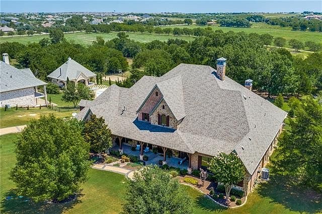 Custom 1.5 Story POOL Home. Breathtaking views from this heavily treed 1.6 acre creek lot in prestigious Gentle Creek Estates golf course community! Home includes 5671 sq.ft of pure luxury! 5 BR-5.1 BA-2 Din-3 LA-study-covered front & back patios. Massive gourmet kitchen w huge island, built-in refrig, granite ctops & family sized kitchen nook. 19x24 Master Bedrm w-rounded wall of windows that view trees & creek. Plantation shutters, extra-large bedrms, wet bar & 2 living rooms. Game rm, bedrm and full bath upstairs. Charming front porch, breathtaking tiered backyard. Diving pool, outdoor living, fireplace and outdoor kitchen. This home has it all & no detail has been overlooked. 4 car garage & Prosper ISD.