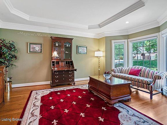 Rare opportunity in the prestigious enclave of Ashmoor Woods, one of Louisville's most sought-after areas. An exquisite executive home with approximately 6,350-/+ total finished square feet, offers classic elegance, abundant space, and entertaining ease. This three-level traditional home has 5 BR, 6BA, including a primary bedroom on the first AND second floor. A heavily wooded, fall away lot offers ultimate privacy on a .85+/- cul-de-sac lot. The large, screened porch and two levels of expansive decking provide a front row seat for the relaxation of birdsong and wildlife or lively barbeques. Exceptional craftsmanship shows in the extensive crown molding, trim details and custom carpentry throughout. An impressive entry features a wood inlay flanked by the formal dining room and a sitting room, which could serve as an office, music room, or formal living room. Gorgeous hardwood floors beam throughout the first floor!