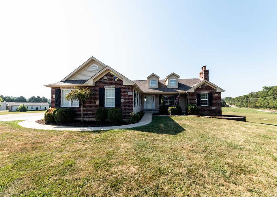 Spectacular Custom walk out Ranch home with over 3200 sq feet of finished living space, oversized 3 car garage on 2.8 acres located just south of 70 and 20 min from Wentzville! No detail is left untouched! The exterior boasts brick and stone finishes with custom shutters. This open floorplan offers custom built-ins in the living room, beautiful upgraded kitchen, walk-in pantry, main level laundry room and and a breakfast room! The master suite is luxurious with a locker room style walk-in shower, heated floors and walk-in master closet! The walk out lower level opens to a large rec room and wet bar with brick and stone front, sleeping room and wood burning fireplace! Outside the beauty continues with a spacious covered deck and high end stamped patio for entertaining and newer roof (2016). The custom exterior fireplace will be perfect for enjoying those fall nights in your new home!