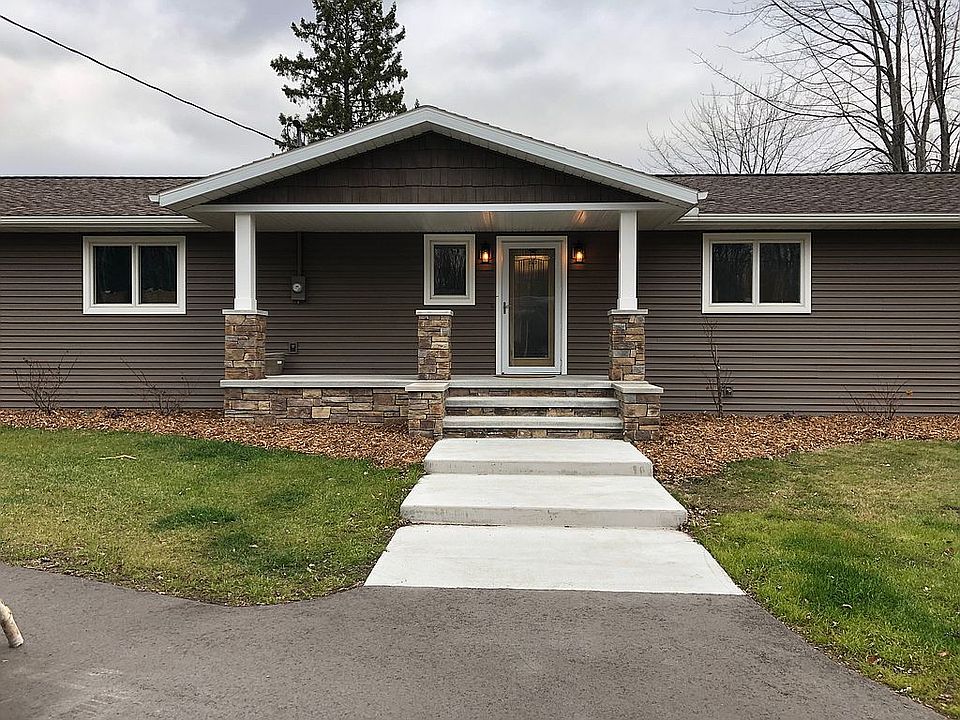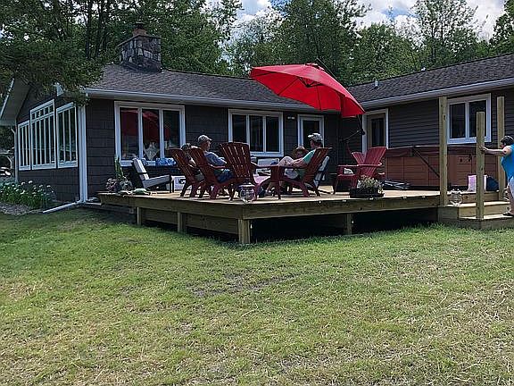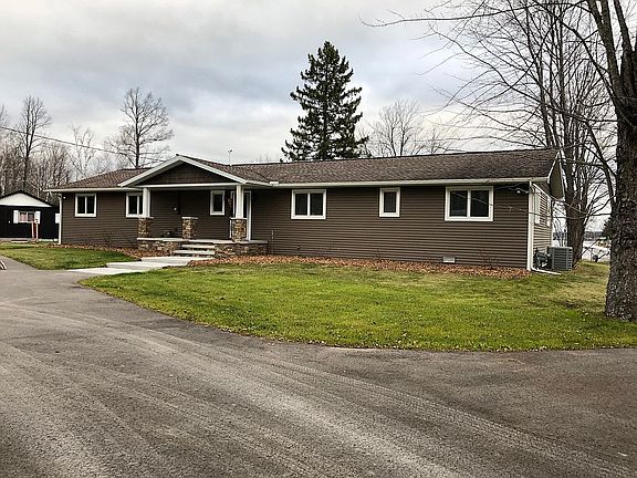 LAKEFRONT, 2968 Sq. ft. Ranch style home 3-4 bedroom 2.5 bath with 5.68 acres and 123ft frontage on all-sports Long Lake. PROPERTY FEATURES: Beautiful setting on quiet Brother’s Bay no boat hoist needed with private dock that conveys. Amazing lake views, 30x40 2 bay pole barn garage, Sauna shed, 1940s 2bed 1/2 bath log guest cottage/rental, shower house, large usable yard, fire pit, paved parking. HOME FEATURES: Gorgeous walnut wood flooring, new carpet in bedrooms 2020, core tech tile in laundry and multipurpose room, new paint and trim, lighting throughout. The open floor plan features spacious entry, living, dining and kitchen, with vaulted wood beam ceiling, beautiful cut field stone fireplace, with new Heat & Glo gas log insert, New lighting, lots of windows for lake viewing, recently updated kitchen with granite counter tops, stainless appliances, duel fuel range, lots of cabinets, ceiling fans, pantry. The 2 guest rooms were completely remodeled in 2020 incl. new trim and paint and carpet. Guest bath and 1/2 bath completely remodeled in 2021 with new paint, flooring, cabinetry fixtures and lighting. The spacious master suite was remodeled in 2020 with new paint, trim and carpet, has ceiling fan, and a wall of closet space, master bath features tile floor, marble counter top, and spa like curbless walk-in shower. There is a extra large laundry/storage room, a den with deck access. large multipurpose/4th bedroom which includes built in cabinets and long wooden counter top workspace, 26x28 deck with 4 person hot tub that conveys. Concrete floor crawl space. New furnace & a/c 2019, New well pump 2017, New septic lift pump ~2015 ****There is an additional 2.68 acres with cottage and 112 ft frontage on Long Lake that is adjacent to this property, that is also available.