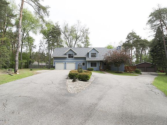 Beautiful home on over 3 acres. Home features a professionally painted exterior, new roof, 24x36 pole barn. Updated kitchen with hickory cabinets. Updated flooring upstairs and main level. 4 bedrooms which includes a master suite, 2.5 baths. Spacious living room with vaulted ceilings and a beautiful floor to ceiling wood burning fireplace. Family room/rec room/office space upstairs. Three seasons porch. Wrap around deck and finished walk out basement with recreation area.