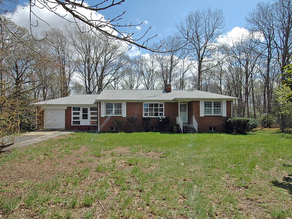 If you're looking for a home that's convenient yet private - this is it. 3 bedroom, 2 bath all brick rambler on 1.39 acres with fully finished basement. There's a 4-year old roof, new appliances in the kitchen, and the wood floors on the main floor have been beautifully refinished wood floors and shine. The main floor is open and light-filled. The living room has a fireplace and a large bay window. It opens to the a separate dining room on one side and a breakfast room on the other that opens to a back deck. There are 2 bedrooms and 1.5 baths on the main floor. The fully finished downstairs can be a potential in-law suite. There is a partial kitchen, a family room with the 2nd fireplace, a full bath and two sitting rooms. 1 car garage with enclosed breezeway. Not a bank sale/short sale. Ready for quick settlement.