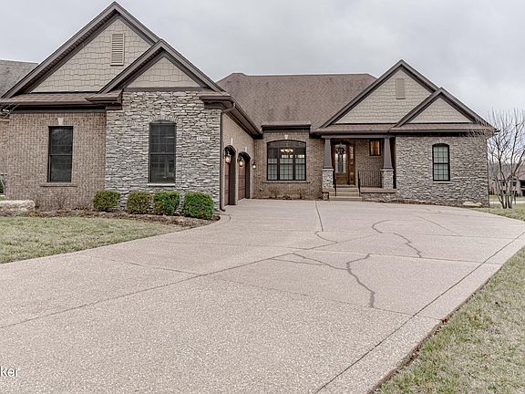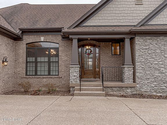 Beauty, elegance and comfort collide in this custom walkout ranch, overlooking a pond in the desirable Shakes Run neighborhood of Fisherville. This remarkable brick 5 Bedroom, 3 1/2 bath home is situated at the end of a cul-de-sac and convenient to the Shakes Run clubhouse. Through the covered front porch, you are greeted by stunning hardwood floors, decorative interior arches and designer lighting. With entertaining in mind and elaborate details, each room has been meticulously crafted to offer an impressive custom-built experience. Your formal dining is enhanced with a sleek, decorative window and plenty of space for a large table and chairs, as well as a serving buffet or cabinet. A Butler's Pantry is between the dining room and an entertainer's dream kitchen with stainless steel appliances, quartz countertops, decorative tile backsplash, and the perfect layout for having gatherings that can flow inside and out from the screened-in porch and full deck. A two-tiered kitchen island with sink makes preparing meals smooth and enjoyable, as extra seating allows guests to keep you company. A large eat-in kitchen dining area and comfortable and cozy living space with a gas fireplace complete this open layout. The lovely primary features an ensuite bath with water closet, tub, shower and custom sandstone tile work, as well as a luxurious closet. The additional bedrooms on the main floor provide an abundant amount of space and closet storage, as well as an additional full bath. The spacious mudroom allows for plenty of additional storage. The stunning basement continues the trend of design and style! A second full kitchen and multiple gathering areas allow for continuous flow, inside and outside of the home. A gorgeous patio is perfect for overlooking the lake while you enjoy your beverage of choice and beautiful sunsets. The basement also has three large bedrooms, a full bath, and a bonus room to use however you desire, with another bedroom available that could have a closet added to make this a 6 bedroom home. Plenty of extra storage is available in this level, as well. So many amenities and details will give you peace of mind in this home. An instant hot water system, multiple closets with customizable shelving systems, Energy Star certification, low-e protective coating on some windows, whole home audio, and entire lot irrigation (on a separate meter). The elegance and size of the home, and the spacious 3 car garage are unique features that will keep you loving your home for many years to come!