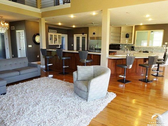 Luxury in the country! Welcome home to this beautiful custom built home on 20 +/- acres. Nearly 4,800 sq ft finished. Big beautiful kitchen. Finished basement with kitchen. Nearly 900 sq ft master suite. Big deck. Screened sitting areas. Built-in sauna. All on 20 +/- acres with 40 x 60 shed (concrete floor). Close to Lawrence, Topeka, KC and 45 minutes to KCI.