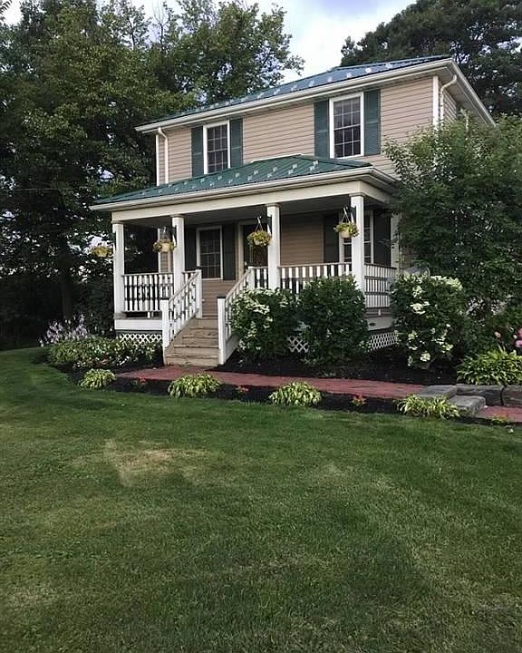 Welcome to the tastefully updated 3 bedroom, 1 full, 1 half bathroom overlooking the stunning views of Middlefield country life! Enjoy the most beautiful sunrises from the front porch or under the gazebo overlooking the gorgeous open land. Freshly stocked garden. This home features Kraftmaid Hickory cabinets, stunning hardwood and ceramic floors, all seasons breezeway with slate floor, heated and drain that's perfect for a mudroom, workout room, office or indoor gardening. Massive 32 x 50, 6 car garage!! Also includes 12 ft ceilings and heated floors with its own water tank in the garage! Septic replaced in 2020, whole house water softener with 3 stage osmosis system for kitchen sink and refrigerator updated in 2020. Play-set is negotiable, installed in 2019. Don't miss seeing this beautiful home!