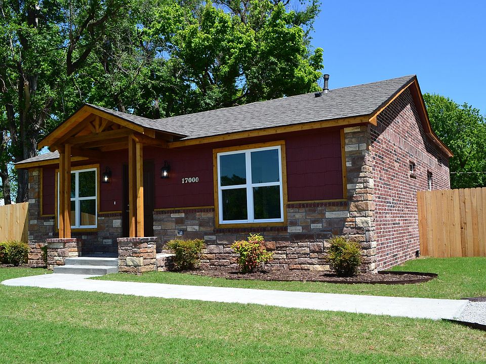 - Exterior features: Stone, Wood, Wood products, Brick, Composition