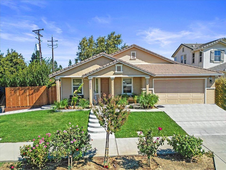 Welcome to this beautiful single-story home offering 3-4 bedrooms and 3 full bathrooms. The open floor plan is perfect for entertaining, with a spacious living room and a large family room that flows seamlessly into the dining area and bright kitchen, complete with stainless steel appliances. The primary bedroom features a walk-in closet, providing ample storage. You'll love the convenience of the dedicated laundry room with cabinets and a sink. This home offers both comfort and style, ready to meet all your living needs!