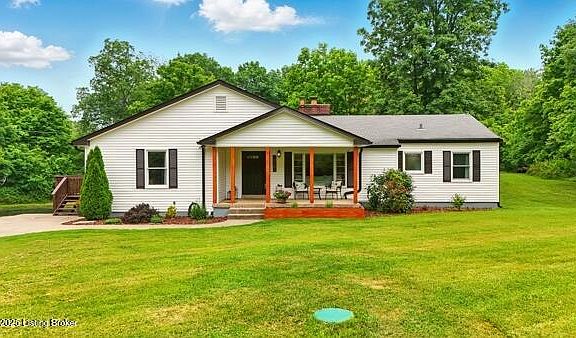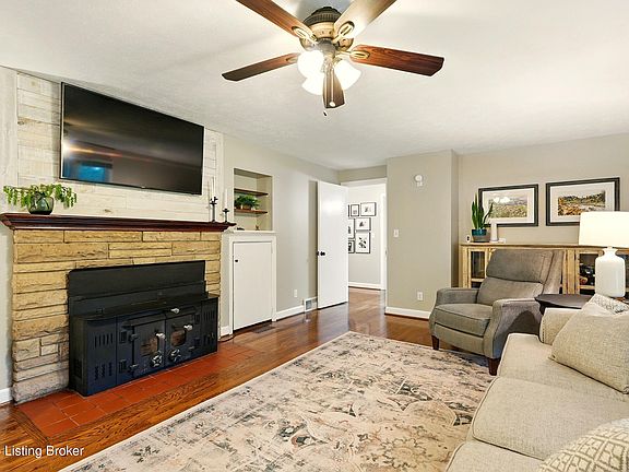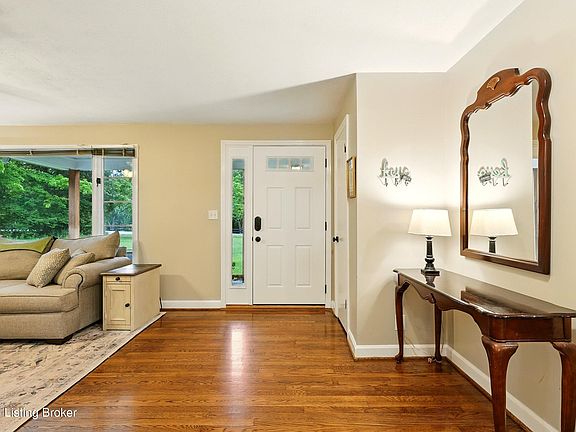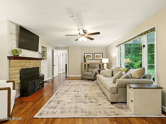 This charming home sits on a serene 2.5 acre lot. The partially wooded property and fully stocked pond provide a rustic setting with close proximity to Jeffersontown and the city of Louisville. There have been multiple recent upgrades including a partially finished basement, an expansive six car garage, and a remodeled primary bath. This home features 4 separate bedrooms with an open/split floorplan. Other upgrades include new gutters, fresh paint inside and out, and tile showers in both bathrooms. Other features include a board and batten dining room, stainless appliances, and fully refinished oak flooring throughout. This home sits less than 12 minutes from the Gene Snyder, has been well maintained and is completely move-in ready for a new family.