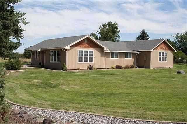 Absolutely gorgeous 4+ bedroom home on almost 10 acres. This home has a completely updated kitchen, which is open to the living room. There are two master bedrooms, one with a jetted tub and not one, but TWO walk in closets. There is beautiful wood trim throughout the house. Outside, there is a beautifully landscaped front yard, an 18x50 storage shop, and an additional animal shelter/coop. There is over 8 acres of fenced pasture area that is irrigated with wheel lines. Call your Realtor today to purchase this gorgeous property.
