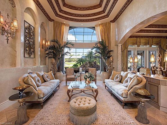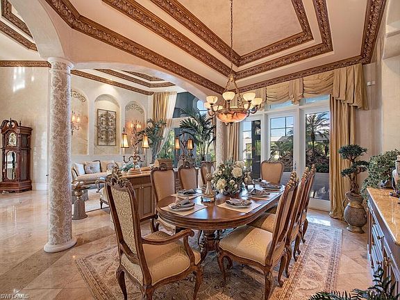 Views! Views! Views! Expansive Long Lake and Golf Course Views! This Grand 2 Story Estate Home Boasts One of the Best Golf Course Views in all of Mediterra! Outstanding craftsmanship is reflected in every aspect of this custom built home. Upon entering the home you are greeted with sweeping views that are visible from every room. Marble floors throughout the home including the lanai. Faux finishes, Venetian Plasterd Walls, artwork design in niches, coffered ceilings, custom crown molding, granite throughout. The family room is the pivotal point in the home, it is open and spacious, overlooks the entire outdoor living area. Indoor living flows to the outside where the pool side fireplace and summer kitchen make entertaining a delight. Your family and guests will enjoy the tiered and terraced negative edge pool with water features. Mediterra has all the amenities you desire for Exclusive Upscale Gulf Shore Golf Course Community Living in tropical paradise. New Roof and New Lanai Screens 2018.