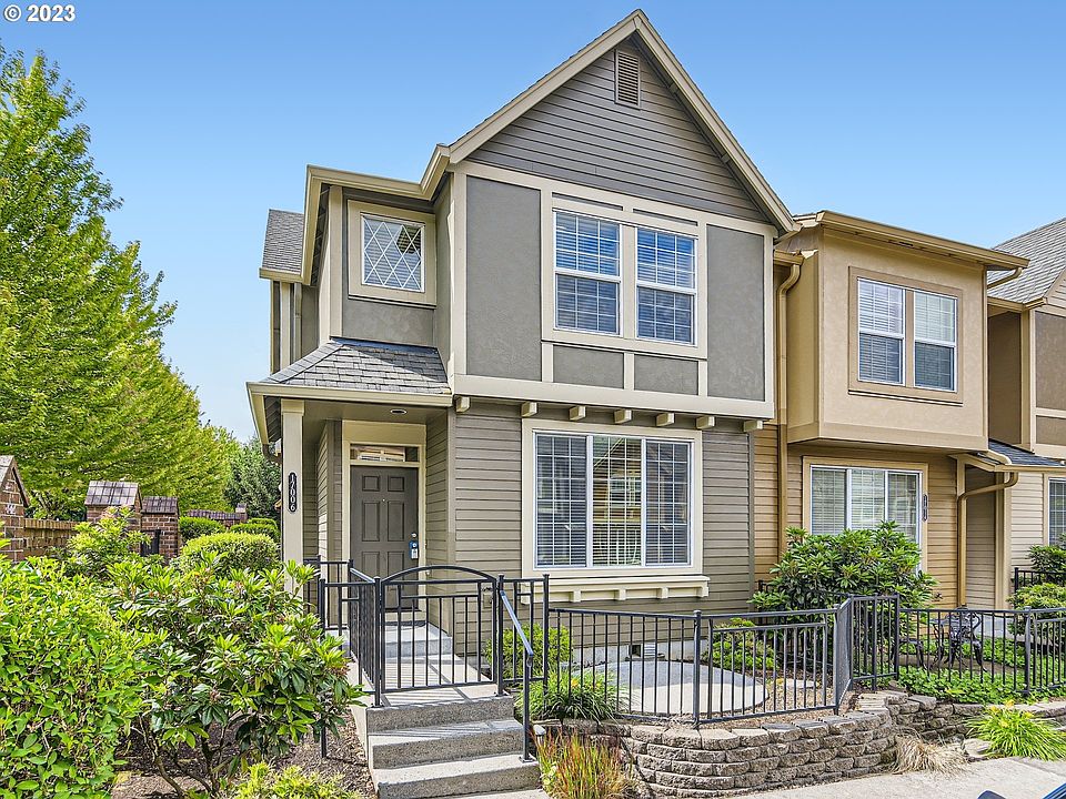 Well-maintained row house! Both bedrooms are ensuite with walk-in closets and primary has large soaking tub. Bright versatile loft space for office, family room, game room, etc; Laundry room; living room with fireplace; kitchen, dining room, and half bath downstairs. 2-car garage with alley entrance. Wonderful Arbor Station community offering club house; gym; pool; spa/hot-tub. HOA covers internet and all exterior maintenance (roof, gutters, painting, landscaping, etc.). Just minutes to Tualatin Hills Nature Park; MAX station; major highways; Nike, Intel; and schools. Move-in ready! All appliances go with house. Seller offering 1yr Home Warranty through American Shield at closing.