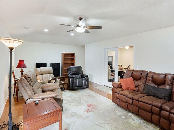 Wonderful home with lots of upgrades. Real hardwood floors in living room, hall and dining room. Ceramic Tile in kitchen and wet area of bathrooms and linoleum in large utility area. Kitchen has plenty of room and has upgraded Electrolux Range with Convection oven and new Stainless Steel refrigerator. There is a Jack & Jill Bathroom between bedrooms 2 and 3 and the half bath is conveniently located in the hall. The Tiffany lights in the hall and the one over the dining table all match and will remain in home. Bedroom 4 has ceramic tile and two Murphy Desks and a large closet with room for storage. The home is fenced with Double Gate opening to paved road behind, which make easy access for boat, RV or Utility trailer. The 10X16 Shed has electricity and will make a great workroom. Gardening tools and lawn mower are kept in the smaller shed. The Gazebo design of the porch provides shade and all the bird feeders attract multiple species of migratory and natural area birds. Home is in move in condition and is a MUST SEE.