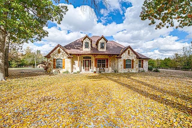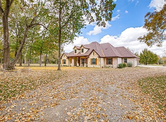 Welcome home to 11.4 AC of PRIVATE, SERENE, PEACEFUL lot filled with trees, stocked ponds & nature! This gated, custom single story home boasts 4 large bedrms, 3.5 baths w office & game-media rm or 5th bedrm. Gorgeous stone & wood throughout, open floor plan & gourmet kitchen with walk in pantry, granite & ss appliances overlooking the outdr kitchen.Fireplace features posi-pressure technology w ability to heat the whole home. Sit outside & enjoy the quiet while watching the deer, overlooking the pond or in front of the fire pit. Huge shop for tractors, 4 wheelers & all your hobbies w separate barn for animals. A rare chance to own a one-of a kind property on one of Rockwallâs most desirable streets! Ag Exempt!
