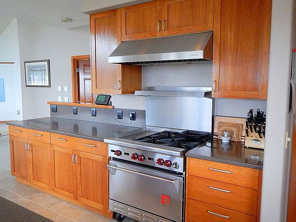 Enjoy panoramic views and gorgeous sunsets from this custom 4BD/3.5BA 3179 sqft home. The kitchen is a cook's dream with stainless appliances, cherry cabinets, large pantry, and ample counter space. The open living room features a Tulikivi soapstone fireplace. The master en suite has views of Shelter and Admiralty Island. Downstairs you'll find two full bathrooms, in-home theater, family room, and 3 bedrooms with built-in desks, lofted beds, and walk-in closets. In-floor radiant heat throughout.