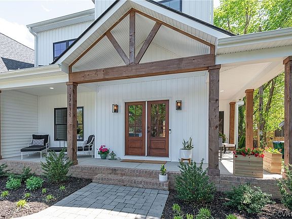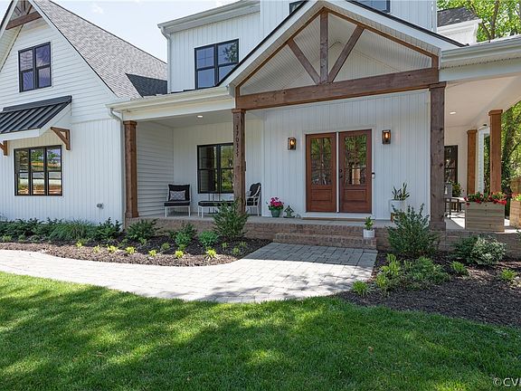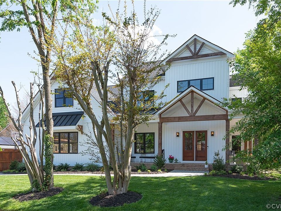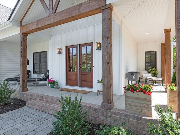 Modern urban farmhouse with wrap around porch & 5 Bedrooms/3.5 Baths! The 1st floor offers wood floors throughout, dining room, expansive gathering room that includes kitchen & family room, primary bedroom with en-suite, 1/2 bath, laundry and easy access to the attached double garage. The open kitchen features solid surface counters, loads of cabinets, gas 5 burner stove, large island & pantry. The family room is anchored by gas fireplace with shiplap accent wall & beamed ceiling. The 1st floor primary bedroom has plantation shutters, walk-in closet, attractive barn door leading to the gorgeous spa-like bath w/ tile floors, two large vanities, phenomenal soaking tub & tile & glass-walled shower. Attractive stairs leads you up to the loft - perfect space for a den, office or exercise room. There is an additional bedroom suite that creates a secondary large primary bedroom, private bath, walk-in closet and bonus room that is perfect very private home office or nursery. Two rear bedrooms each have walk-in closets, bright additional bedroom overlooking front yard, and a large hall full bath with double vanity rounds out this amazing home! Low maintenance and close to everything!