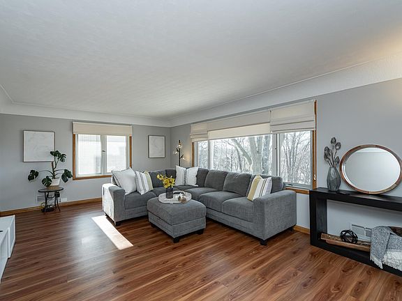 Welcome to this remodeled 3-bedroom, 2 bath home nestled on a quiet street in NE Rochester. As you enter, you'll be greeted by double glass French doors that allow plenty of natural light into the entryway, which is a theme that continues throughout the home. The newly finished basement features a spacious bedroom and a 3/4 bathroom with a walk-in shower. The main floor includes a primary bedroom, a second bedroom, and a full bath. Enjoy meals in the formal dining room or the cozy breakfast nook in the kitchen, which boasts newer appliances. The home also has newer flooring throughout, a new roof, a new AC/furnace, and a new garage door. Unwind in the sunroom with a charming freestanding fireplace, and look out to the backyard offering peace and privacy. The main living room offers a beautiful view of downtown Rochester. The two-car garage provides additional workspace or storage at the back. Conveniently, the bus line runs just one street over, offering easy access to downtown and other areas of the city. Located in a peaceful community, this home offers a great location with easy access to everything. Don’t miss out on this fantastic property!