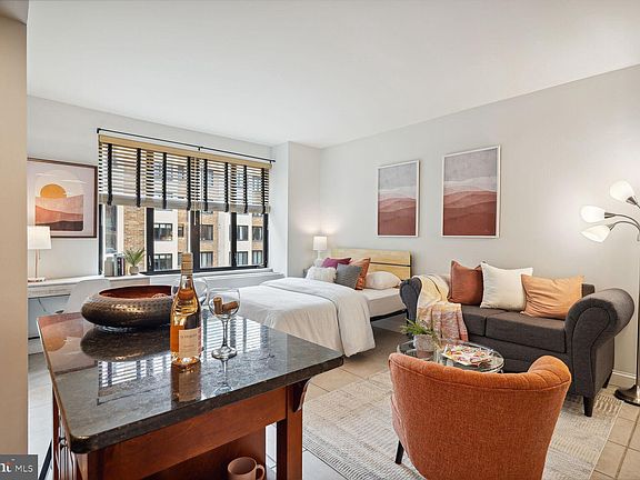 Step inside this charming studio and be wowed by the open-concept floor plan and abundance of natural light. The large sun-filled windows allow natural light to flood the space, creating a warm and inviting atmosphere you'll love coming home to. High ceilings add an extra touch of elegance and spaciousness to the unit, giving you a sense of grandeur in your living space. The kitchen is complete with stainless steel appliances, granite countertops, and a kitchen island perfect for dining in. Take in the incredible views of the city from the rooftop deck, where you can enjoy a peaceful morning coffee or evening cocktail while watching the sun rise or set over the nation's capital. Workout in the ftiness center, or relax in one of the many quiet, tucked away common areas found around the building. With two metro stations just a short walk away. commuting is a breeze, making it easy to explore all that Dupont Circle has to offer. For the foodies out there, you'll love all the 14th street dining and entertainment options nearby. Just a short distance from Trader Joe's and Whole Foods. The Chastleton is an iconic building located in Dupont Circle. Built in 1920, it is a registered historic landmark and one of Washington's Best Address Buildings that was once home to famous residents such as composer John Philip Sousa, Supreme Court Justice Harry A. Blackmun, and General Douglas MacArthur. This building has been beautifully restored to preserve its original grandeur while incorporating modern amenities for comfortable living.