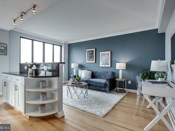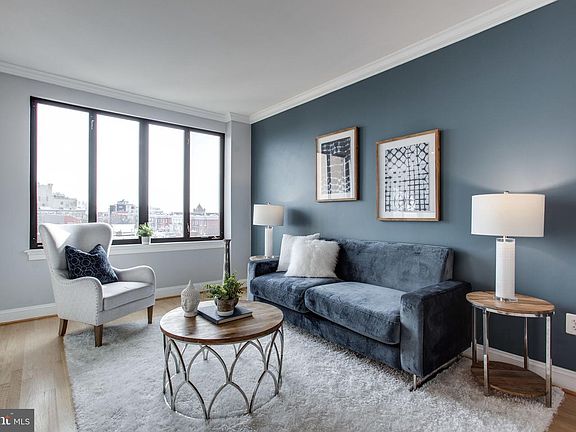 Located in the historic Chastleton Cooperative on the corner of 16th Street and R in Dupont Circle, this spacious 1 bedroom, 1-bathroom sixth floor unit offers impressive eastern views of the city. In unit washer and dryer, central heating and cooling and a secure parking space are a few of the modern conveniences featured in this unit. Ample natural light floods the open floor plan and oversized windows provide nearly panoramic views of the surrounding Dupont Circle neighborhood and expanses of blue sky. Hardwood floors throughout are accented by crisp white cabinetry and crown molding. The kitchen, with stainless steel appliances and granite countertops, and functional layout with an island for ample storage and workspace. Adjacent to the kitchen is an additional sunlit space, convertible to a den or perfect for a dining table or office. The sizable bedroom with windows and views matching those of the living room is equipped with a ceiling fan. Two closets accent the bedroom each with custom built in elfa components offer ample storage. Off of the kitchen, enjoy access to an in-unit washer and dryer. A hall closet conveniently located across from the bathroom and adjacent to the unit entrance serves as additional multifunctional storage space. The Chastleton amenities include a rooftop deck, 24/7 security, professional onsite management, bike storage, secure package storage, courtyard with grills and garden, onsite gym, ballroom available for events. Unit comes with single secure parking space and owners only pay electricity - basic cable, internet, and HBO included. Cats welcome, sorry no dogs.