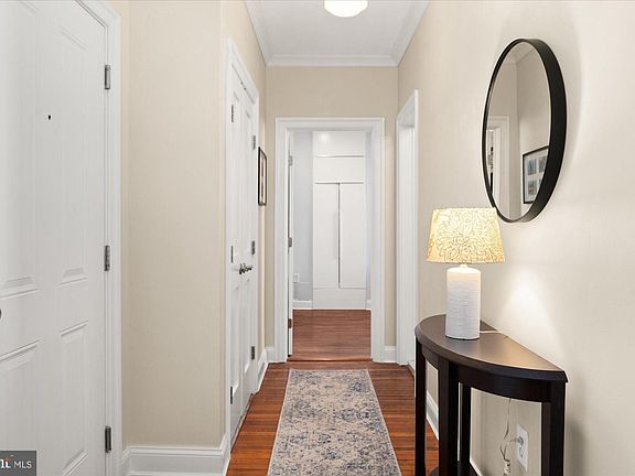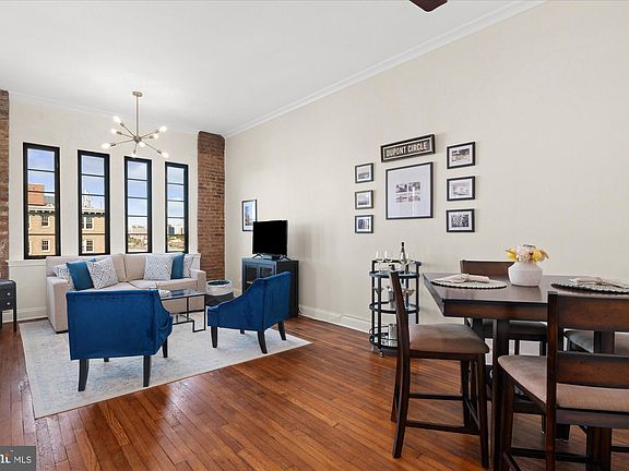 PRICE REDUCTION! Welcome to this beautiful top-floor 1-bedroom, 1-bath residence in the prestigious Chastleton, offering sweeping city views. The bright and open living/dining area features stylish exposed brick and expansive windows that flood the space with natural light, complemented by soaring 10’3” ceilings that enhance the airy atmosphere. Elegant moulding and hardwood floors are found throughout the home, adding timeless charm. The open-concept kitchen is equipped with a 4-burner cooktop and refrigerator, along with a Bosch oven and dishwasher. Just off the kitchen and living room is a balcony that can be accessed via windows, perfect for container gardening. A hallway behind the kitchen leads to the HVAC closet and offers space for a desk and chair—ideal for a home office setup. At the other end of the unit, the bedroom includes an open wardrobe system and a stacked LG washer and dryer closet for added convenience. The adjoining bathroom is bright and welcoming, featuring a window that brings in natural light. Residents of The Chastleton enjoy a range of amenities, including a well-appointed ballroom, private courtyard, and fully equipped fitness center. Ideally situated between Dupont Circle and Logan Circle, this prime location places you in the heart of D.C., close to Dupont Circle metro station, grocery stores, shopping, and dining.