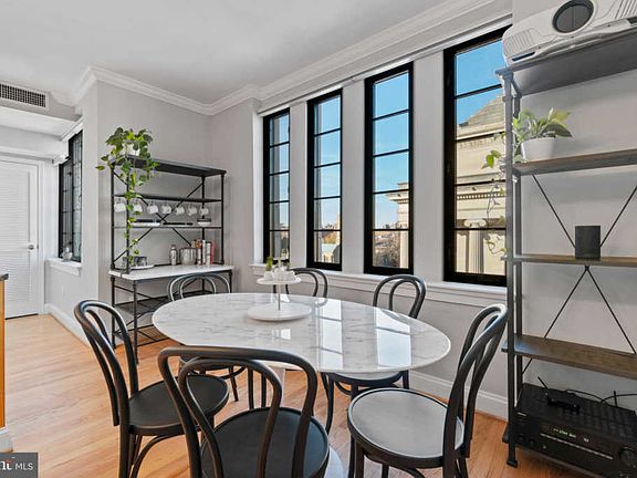Welcome home to this one-of-a-kind gem of a property located in DC's most desirable neighborhood, Dupont Circle. This one bedroom, one-bathroom penthouse unit remains private from prying eyes but still has sweeping views and is a true entertainer's dream. You will be in awe with the open and airy floor plan, home theater setup (projector, surround sound speakers, and screen), touch lighting, remote controlled black out blinds, space for a six person dining table, and the BEST VIEWS IN THE ENTIRE BUILDING of the historic masonic temple next door! No details have been spared in this dynamic penthouse. The building, the Chastleton, is the epitome of DC living and the amenities include a rooftop terrace, gym, courtyard with BBQ, ballroom, 24 hour front desk and security, rentable storage space, HBO, visitor parking spaces, monthly bulk trash pickup, and possible long term on-site rental parking. Monthly dues include all utilities (except for electric) and Internet!