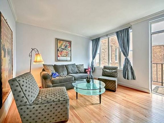 An absolutely stunning penthouse unit, 830 is perfect for entertaining with an open granite and stainless kitchen, sun-drenched balcony (one of the few in the building!) and totally renovated bath accessible off the hall. A huge bedroom allows space for an office set up. Oak hardwoods throughout. Doorman, Fitness Room, Ballroom and roof terrace. Cats allowed.