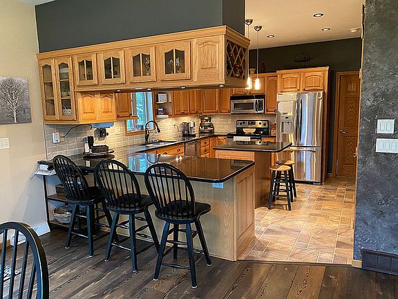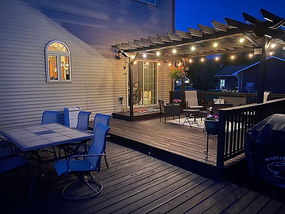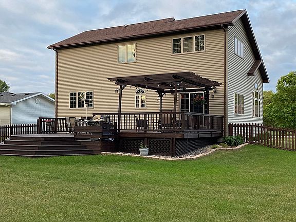 Custom built two-story home in Robinwood Estates, 1701 64th St NW, Minot. 3300 sq ft finished on a spacious 1/2 acre lot. Fenced yard with garden shed. Upper level has a living room area, 2 bedrooms with walk-in closets. Full bath for sharing and a bonus 250 sq ft room. Main floor has an open concept living area, dining, kitchen; with many cabinets to include under and overhead cabinet lighting. The master suite includes walk in closet with master bath, spa tub and shower. Main floor also has a 1/4 bath for guests. The basement is home to a bar area and another living/gaming area, electric fireplace, bedroom, bath and laundry. Don’t forget about the exercise or office room with double glass doors. Granite countertops in kitchen and bath to impress. A large 630 sq ft multi level deck with lighting to enjoy those summer evenings. The home has dual HVAC and sprinkler system. Move in ready for you!