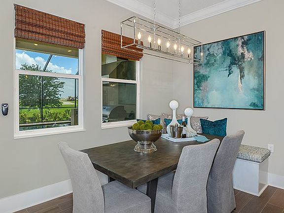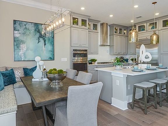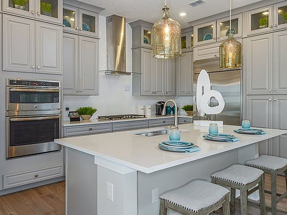 The Boretto is a 2,644 square foot dream home. With a gourmet kitchen featuring a gas cooktop, double wall oven, quartz countertops and GE® stainless steel appliances, entertaining is a breeze. The split floorplan is ideal for larger families, or hosts who have frequent overnight visitors. The master suite has a spacious walk-in closet, luxury bathroom with double sinks and a garden tub. Three additional bedrooms are located on the opposite side of the home, providing guests their own private retreat.