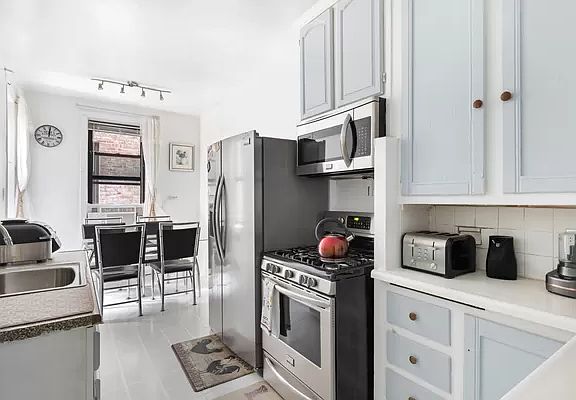This sprawling one bedroom home, which has been converted to two bedrooms, has leafy views, a quiet back of the building location, and is in one of the area's most popular co-op buildings. Enter into a huge foyer with a built-in curio cabinet and a large walk-in closet, and which is spacious enough to make into a home office area. To the right is a wide galley kitchen with some original cabinetry and an eat-in area with two exposures. The bathroom is extra large for a pre-war building, and has a separate shower stall that would be a perfect place to install an in-unit W/D, which are allowed with board approval. The enormous bedroom with two exposures has been split into two rooms, both of which are still quite spacious and one of which has two sizable closets. In total the home has five closets, two of which are walk-in, hardwood floors, and pre-war details throughout. Berkley Square is an excellent co-op with lots of amenities and very strong financials. Extremely affordable maintenance, no underlying mortgage, and large reserves make this is a very sound building in which to invest. Pets, including dogs, are allowed, and the building has elevators, doormen, a live-in super, a full-time porter, bike storage, common outdoor space, and a bike room. Extra storage is available for rent (possible waitlist) and parking is $75/month (waitlist). Conveniently located close to Prospect Park, the B and Q trains at Church Avenue, Cortelyou Road and Church Avenue amenities, and the newly revamped King's Theatre. Less than a mile from the new Kensington Dog Run.
