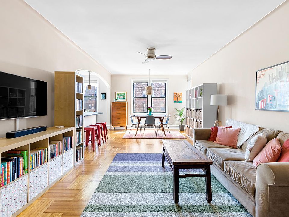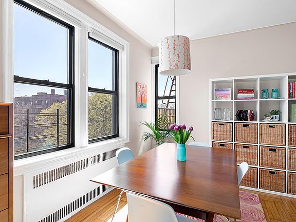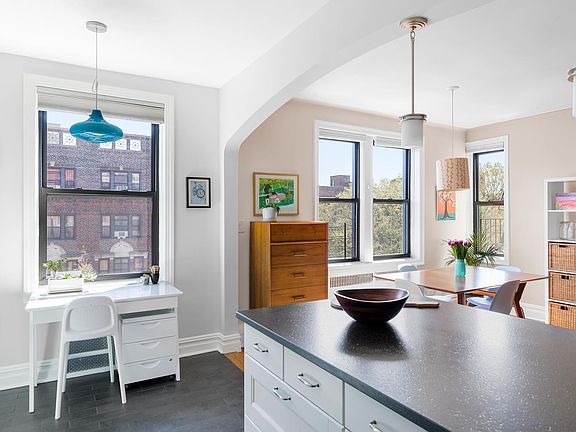 Gorgeous and bright south-facing two bedroom home in one of the area's most sought after co-ops! Nestled on a high floor, just above the tree tops, this pre-war apartment has an open living/dining floor plan and cheerful, modern finishes. Upon entering, you will find a gracious entryway which is big enough to accommodate a home office. The wide, open common space provides plenty of room for both living and formal dining areas. Bordering this room, is the large eat-in kitchen which has lots of surface and storage space, a large breakfast bar, dishwasher, granite counter tops, and a large window. The enormous primary bedroom has two exposures and a large double closet; the second bedroom has a closet and lovely morning light through its east-facing exposure. The windowed bathroom has a long and deep tub and is home to the apartment's in-unit washer/dryer. With four large closets, three exposures, hardwood floors throughout, pre-war details, and extra low maintenance, you won't want to miss an opportunity to make this your home! Berkley Square is an excellent co-op with lots of amenities and very strong financials. Extremely affordable maintenance, no underlying mortgage, and large reserves make this is a very sound building in which to invest. Pets, including dogs, are allowed, and the building has elevators, doormen, a live-in super, a full-time porter, bike storage, common outdoor space, and a bike room. Extra storage is available for rent (possible waitlist) and parking is $75/month (waitlist). Conveniently located close to Prospect Park, the B and Q trains at Church Avenue, Cortelyou Road and Church Avenue amenities, and the newly revamped King's Theatre. Less than a mile from the new Kensington Dog Run.