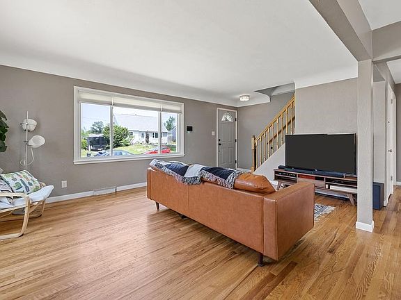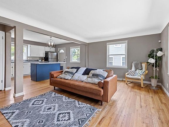 Completely updated home with 4 beds, 2 baths, and an open floor plan! You will fall in love with the open layout that features a large living room with refinished hardwood floors. Updated kitchen with island, newer countertops, white cabinets, stainless steel appliances & gas stove. 2 spacious main level bedrooms with hardwood floors & a full, updated bath. Upstairs you will find 2 more huge bedrooms & another updated bathroom. The lower level is unfinished with plenty of storage space & washer & dryer included. Large fenced-in backyard and a 1 car garage. Updates include: new siding, newer roof, furnace, water heater, windows, electrical, paint, light fixtures & more! Security system/smart doorbell included. Great location near schools, shopping, restaurants, major employers & more! Don’t miss this spacious home with a rare open floor plan!