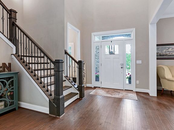 Stunning Banks Pointe BEAUTY! Incredible floor plan with large spacious light filled rooms - GORGEOUS 5" hardwoods throughout 1st floor! A TRUE Gourmet kitchen features two islands with high end "leathered" granite, farmhouse sink, herringbone subway tile backsplash, stainless steel appliances and deco range hood. 1st floor guest bedroom with full bath and private deck. Upstairs owners suite with spa like bath with tremendous walk in closet and office/sitting area. PLUS a huge bonus room & LOFT - two large secondary bedrooms with WIC & bath. Large wooded, landscaped corner home site. Enjoy your beautiful private yard from the oversized screen porch PLUS a 3 car garage. SUPER neighborhood pool! FANTASTIC schools - this home is a must see!
