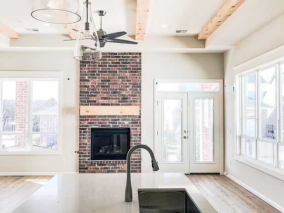 This historically inspired home in our Beckett plan features a brick to ceiling fireplace, stained beams, a breakfast nook and an open concept kitchen/living spaces with great natural light. Home has 3 oversized bedroom and 2 full baths. The master retreat features double vanity, spa glass oversized shower, soaker tub and a walk in closet. Home is in our community The Plaza at Town Square featuring lawn maintenance, access to the Town Square Residents Club & Resort Pool, wooded green belt, pond with fishing dock and close access to I-35. Model home at 1616 Boathouse Road, open 7 days a week.