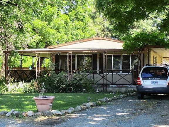 Welcome to your serene escape just minutes from Grants Pass & Merlin. This delightful 2 bd, 2 ba home with 1,248 sf of comfortable living space on a spacious 0.34 acres. Perfectly blending rural feel with close proximity to city amenities, this property has a lot to offer. Relax on the wrap-around front porch with an attached carport, perfect for year-round enjoyment and plenty of parking on the circular driveway. The home features bright living room with ceiling fan, kitchen with eating bar, dining area and built in hutches for extra storage space. The master bedroom includes a soaking tub and stall shower, creating a spa-like retreat. New wood laminate flooring, new water heater and interior laundry room are special touches. Outside includes a spacious storage shed, partial RV hook-ups with 220 power and water, new 6' fence and garden area ready for your favorite plants and vegetables. Guardian Mortgage will pay 1% of buyer's closing costs.Email rhondabeck@gmc-inc.com for more info