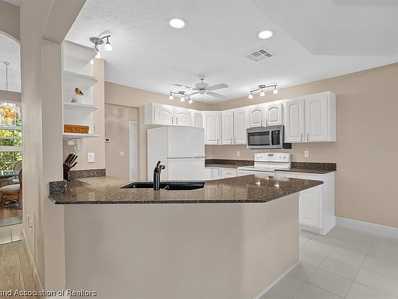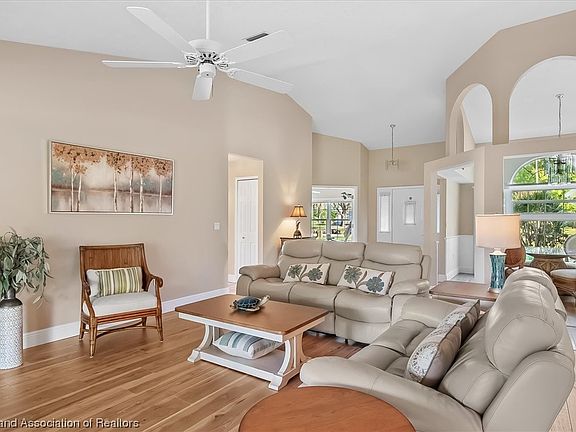UNDER CONTRACT. ACCEPTING BACK UP OFFERS This meticulously maintained 3BD/2BA home, plus an added bonus of versatile office space that could easily serve as a 4th bedroom. 2 car garage plus a 9x12 golf cart space and a 12x16 shed/workshop. Situated in a serene golf course community-Golf Hammock and is on an oversized 1/2 acre corner lot. As you arrive to the property, be captivated by the lush landscaping surrounding this residence that has been freshly mulched, decorative curbing, beautiful flowers, palm trees and so much more. As you enter the home, there is a separate dining room to the left, 16x12 office/ bonus room to the right and an open-floor concept with soaring ceilings in the living room. White cabinets in the kitchen, granite counter tops and a breakfast nook that overlooks the backyard. Indulge in the spacious owners suite, dual sink vanity, jetted tub, corner shower and French doors that open onto a private 40x14 lanai with natural light streaming in. Oversized indoor laundry area, wash tub, built-in desk space, brand new tankless water heater and a generous amount of cabinet space throughout. On the opposite side of the home there are 2 additional bedrooms and a guest bathroom between. Home improvements galore that include: Energy efficient windows, custom faux blinds, laminate waterproof flooring, baseboard molding, electrical panel, lanai screens replaced, gutters and leaf guards, all hardware including door knobs, hinges, bathroom faucets and locks and much more. This home is designed to cater to both entertaining and family life. It's apparent the owners have taken great pride in this residence. Come and take a peek!!
