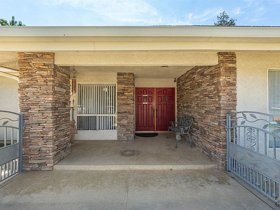 Spacious horse property on over half an acre with a pool and spa! Home has had an extensive remodel with many upgrades and improvements. A Charming courtyard surrounds the entrance as you walk inside to a cozy stone fireplace. This 4 bdrm-3 bath split wing home has an updated kitchen featuring granite countertops and stainless steel appliances. New carpet and paint throughout. Large Master Suite just off the game room. Plenty of room for your RV. A garden area, including a greenhouse, tack room, deep pit and extra storage unit with plenty of room for a shop. The mature Persimmon, Navel orange, tangerine and plum trees, give the property a nice touch. Seller states home is 2910 sq ft, per previous appraisal.