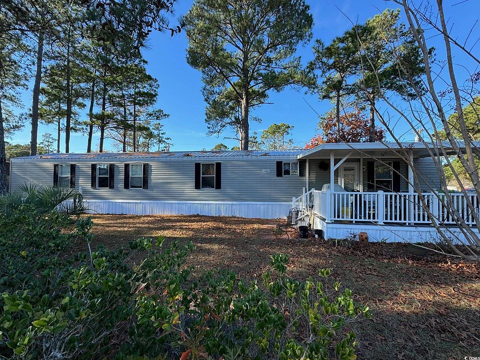 Embrace tranquility and scenic beauty at Crystal Lake! This charming home, situated on a generous corner lot, offers mesmerizing lake views that grace multiple rooms. With three bedrooms, two baths, and a generously sized kitchen, this residence is designed for comfortable living. Discover convenience and ample space with two storage sheds: a 12X8 and an expansive 10x16 shed, featuring extensive attic storage and electricity, perfect for accommodating your storage needs. Enjoy peaceful mornings and evenings on the covered porch, equipped with a grill and a delightful picnic table, ideal for soaking in the serene surroundings. This property's prime location ensures easy access to the beach, entertainment, dining, shopping, and Myrtle Beach State Park. Nestled within the secluded Crystal Lake Community in Surfside Beach, it's just a short golf cart ride to the ocean. Plus, its central position offers proximity to Myrtle Beach State Park, Coastal Grand Mall, the airport, Market Commons, and local shopping outlets. With a new metal roof and an open floor plan, this home blends convenience with style. Furthermore, the master suite boasts large storage areas, providing ample room for organization and personal belongings. A new concrete driveway enhances the property, offering abundant parking space and adding to the appeal of this inviting home.
