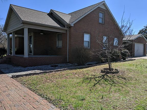 Many possibilities with this property. 2495 sq. ft. 4 bedrooms, 3 baths, brick home on large 0.75 acre corner lot that is great for a large family, adult child/mother-in-law unit, or separate rental unit. Property in the process of being rezoned to B-2 so may be used for business as well as residential. House is located on one lot with extra adjacent lot available for expansion. Downstairs is approximately 1800 square foot, includes large combined living and dining rooms, eat in kitchen, 3 bedrooms, washer and dryer area, 2 baths, sunporch, 164 sq. ft. covered front porch, and 354 sq. ft. wood deck. Upstairs 630 square foot apartment includes 1 bedroom with walk in closet, large bathroom with washer and dryer area, combined kitchen and living room with inside access and separate deck and outside entrance. Apartment has separate electrical and heating and cooling unit. House also includes 544 sq. ft. Unfinished basement and 484 sq. ft. attached 2 car garage and large parking area. Home built in early 1950’s with cedar lined closets, hardwood floors, and gas fireplace. Located minutes from shopping, industrial park and easy access to Pennyrile Parkway (AKA I-24 Extension or I-169) that leads to Fort Campbell, Ky.