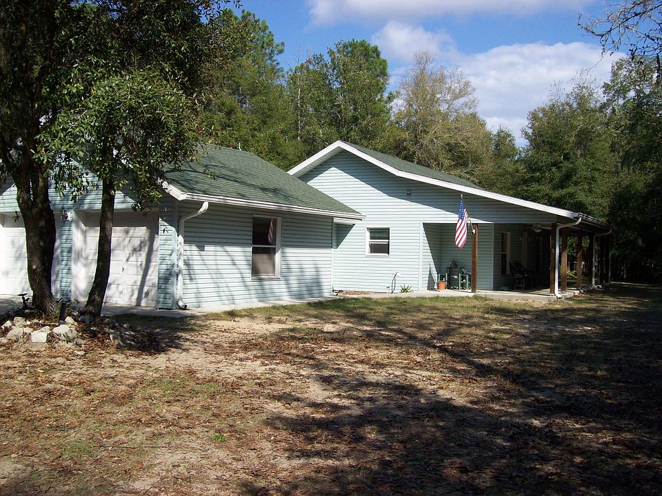 COUNTRY STYLE home with insulated concrete (ICF) walls on 1 fenced in wooded acre. Low heating & cooling costs due to the construction, insulation and double pane windows. Low maintenance vinyl siding on exterior. Large front porch with ceiling fans and concrete walkway around the whole house. Great room is all ceramic tile. Kitchen open to great room and fully applianced. Large pantry closet. Extra room would make great office. Large laundry room with slop sink. Large master bedroom and master bath has a barrier free shower and double sinks. Walk in closets & ceiling fans in all 3 good sized bedrooms. Attached 2 car garage. Septic & well with water conditioning system in 10' x 12' shed. Convenient to Dunnellon and Ocala. Located on private road with deeded river access - road ends at the Withlacoochee River. Beautiful quiet neighborhood. Neighborhood Description Quiet country neighborhood - horses & cows right down the street.