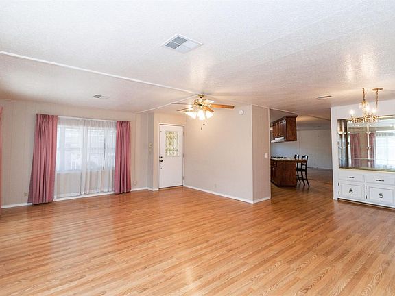 This extremely spacious 1800 square-foot double-wide is the perfect fit for anyone 55 and older looking to move into a great community with a lot of amenities. The residence has been upgraded and maintained with care, boasting hardwood laminate flooring in most all the common areas and clean well kept carpet in the rooms. The kitchen counter-top has been upgraded with granite and a new custom back splash as well. The bathrooms have been upgrade as well and fitted with new counter-tops and new flooring. This is a great home in a great community and will not last, so call your agent to schedule an appointment today.