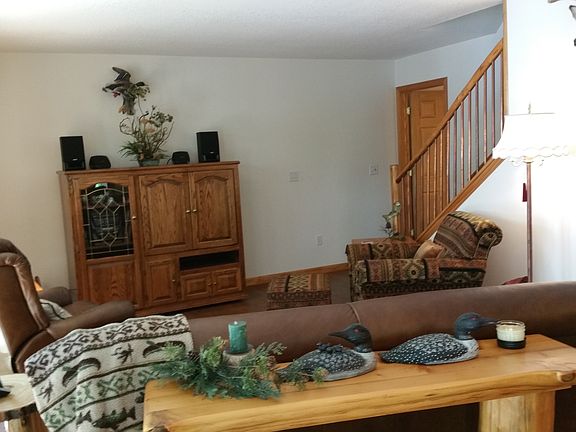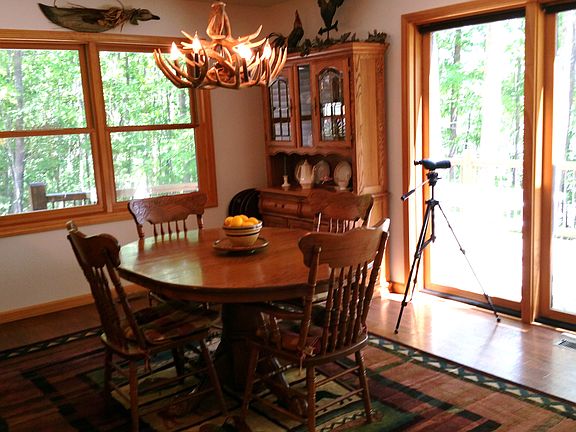 Wow! You will fall in love with this gorgeous Chalet style home overlooking beautiful Hunter Lake in Scottish Hills. Enjoy the best of both worlds with shared ownership of 881 acres of association land (w/only 46 owners) and leisure lake front fun at Hunter Lake. Go fishing for bass, pike, perch, bluegills and crappie, then go hunting for deer, turkey and other game animals on the shared acreage. This home features over 2900 sq ft of total living space, spacious modern country kitchen, jet tub, finished walkout basement, 3 full bathrooms, walk-in closets, game room, open deck, balcony and a lake front view to die for! There is also a 1.5 story 30x40 pole garage with wood burner for heat. Sale includes a roll out dock and a pontoon boat w/2008 Suzuki 4 stroke 25 horse motor. Amenities include: beach, campground, gun range, boat ramp, camper/boat storage and more! This us truly "Up North" living at it's best. Make sure you put this home on your list of Must See homes!