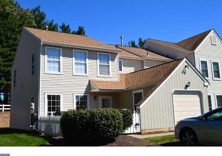 Lovely End Unit Townhome in Southampton with great natural light and an updated eat-in Kitchen. The open flow lends itself to casual and or formal entertaining. In addition to the large and usable Kitchen space is the adjacent Dining Room which is enhanced with warm, wood parquet flooring and molding finishes. The cozy Family Room with wood burning fireplace is a great gathering spot. Ascend the stairs to the Main Bedroom including 2 large walk-in closets with customized organizers and spacious four piece Main Bath. Two additional Bedrooms, Hall Bath and walk-in Laundry Room complete this level. Enjoy Outdoor space either on the Patio to the rear or the Paver Patio Courtyard in the front. There is a one Car Garage and also additional parking in the extended Driveway. The setting with mature trees and cul-de-sac provide a calm and private feel to this unit. The roof and siding are new. All exterior maintenance is handled by the HOA. Relax by the beautiful pool and get some exercise at the tennis courts as part of the living style in Huntingdon Brooke. Don't hesitate to schedule your appointment!