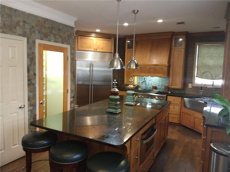 • Kitchen Features: Cabinets Stain, View to Family Room, Stone Counters, Kitchen Island, Other, Wine Rack