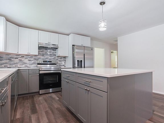 This home has been beautifully updated! As you enter, you step into the front livingroom which boast a ton of natural light and has brand new carpet. The completely remodeled kitchen offers all new cabinets, appliances, quartz countertops, backsplash, sink, and much more. The kitchen opens up to he massive family room. The family room has a gorgeous wood burning fireplace that features a large mantle. This home offers 3 nicely sized bedrooms and two bathrooms. The bathrooms have also been completely updated. Other updates includes new flooring throughout, freshly painted inside and out, new landscaping, furnace and A/C, light fixtures and much more. This home also sits on two lots.