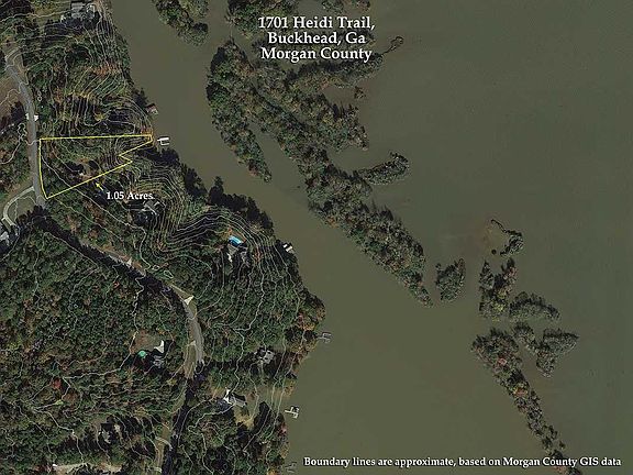 Thinking about retiring to the lake in a few years? This lakefront lot comes complete with a composite max dock and seawall, plus a 2 car garage for your lake toys, and a 2 BR/2 BA apartment - you can enjoy the lake while you plan your dream home. The building site is on a ridge overlooking the lake, with national forest lands on the opposite shore. The main channel flows right past your shore - 10ft+ water depth at the dock! Follow the footpath down to the level lakeside shoreline, and enjoy boating 19,000 acre Lake Oconee - Georgia's second largest lake. Oconee Shores is located on the quiet north shore of the lake, with a community boat ramp and lakeside pavilion.