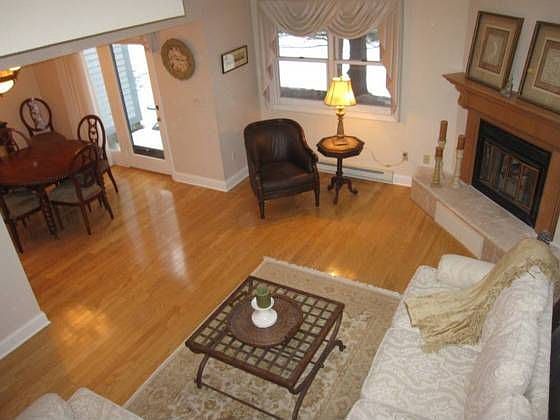 Lovely updated townhouse in Hingham Woods. Bright and Sunny end unit with 2 Bedrooms, 2 Full Baths. Kitchen remodeled with granite countertops and maple cabinets. Living Rm with hd floors, gas fireplace with beautiful handcrafted mantle, and cathedral ceiling - opens to dining area with hd floors. New w/w carpet in 1st floor bedrm. Both baths have been updated with granite counters with new vanity. Crown Moldings, new hot water tank and much more. Heating system re-built in 09.
