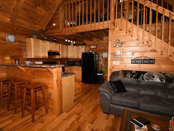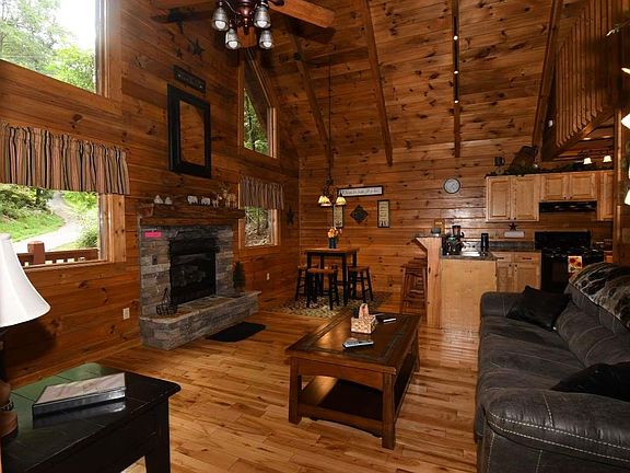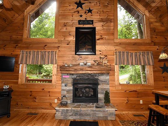 Log home doing well on the overnight rental program. From August 2017 to August 2018 gross rental of approximately $35,402. New tv's, log bed, wood floors, ceramic tile walk-in shower. Covered deck with a hot-tub. Large loft with a air hockey, multi-cade arcade style game. Stone gas log fireplace. All measurements are approximate and information was taken from the county tax records and the buyer should verify all information.